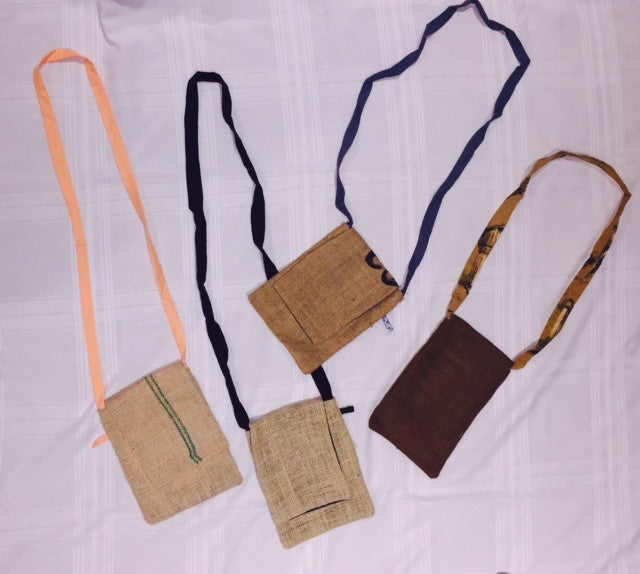 Made from recycled rice sacks in Haiti, this satchel is a great cross-body bag for when you are on the go!